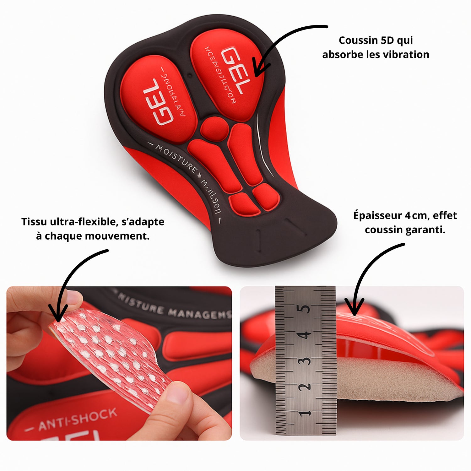 ✅ Confort total sur la selle – Rembourrage gel 5D anti-chocs
